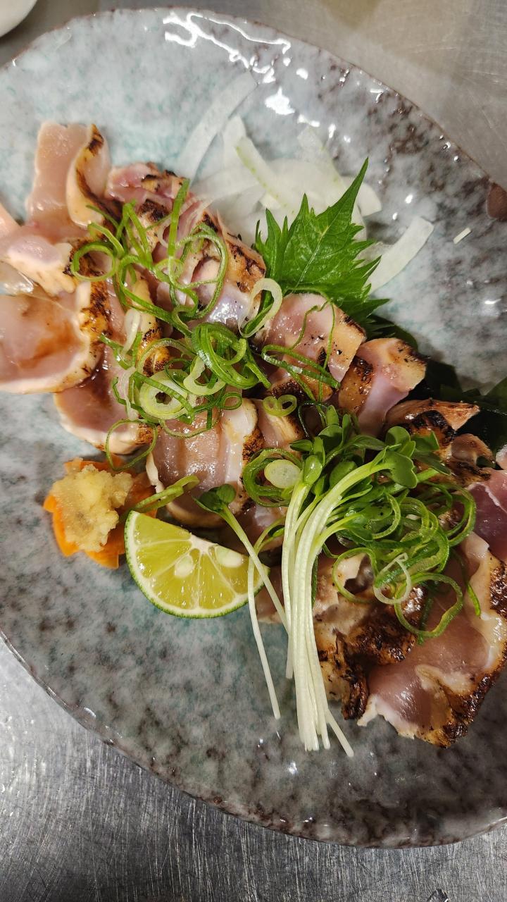魚の刺身だけでなく 地鶏のたたきも人気商品です